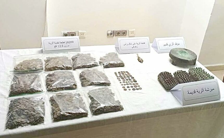 في إطار الجهود التي تبذلها وزارة الثقافة والفنون لحماية التراث الثقافي الوطني، وبفضل التنسيق المؤسساتي المحكم بين مصالح الدرك الوطني والهيئات المختصة التابعة لقطاع الثقافة والفنون، تم اكتشاف وحجز كنز نقدي يضم ما يقارب 10200 قطعة نقدية، من مادة البرونز ، تُشير المعطيات الأولية إلى أنها تعود إلى الفترة الرومانية (القرن الرابع ميلادي)، إلى جانب ثلاثة (03) ممتلكات ثقافية أخرى لا تزال قيد الدراسة والتحديد العلمي.
