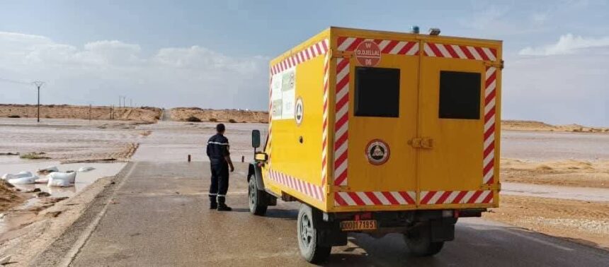 أما بولاية المسيلة تم إمتصاص مياه الأمطار المتراكمة إثر تساقط الأمطار على الطريق العمومي بالقطب السكني.