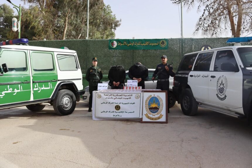 تمكن أعوان الفرقة الجهوية المتخصصة في مكافحة التهريب التابعة لـ المديرية العامة للجمارك الجزائرية بالأغواط، بالتنسيق مع عناصر الدرك الوطني الجزائري، من حجز كمية معتبرة من الأقراص المهلوسة قدرت بـ2070 قرصاً من نوع Pregabalin بتركيز 300 ملغ، كانت مخبأة على متن سيارة سياحية.