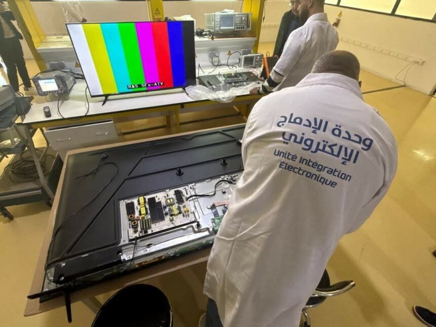 واستمع الوزير إلى عرض مفصل حول استراتيجية تطوير المؤسسة، لا سيما ما يتعلق بإنتاج أجهزة التلفزيون الذكية، والألواح الرقمية، والألواح الشمسية الفوتوفولتية، وأجهزة الدفع الإلكتروني (TPE).