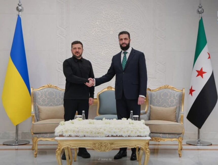 دمشق – بحث الرئيس السوري أحمد الشرع، اليوم، مع نظيره الأوكراني فولوديمير زيلينسكي، سبل تعزيز العلاقات الثنائية والتعاون الاقتصادي، وذلك خلال زيارة رسمية يقوم بها الأخير إلى العاصمة السورية.